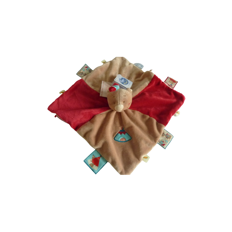 Doudou plat ours 27x27 cm environ, marron rouge. Etat : Comme neuf. DOUDOU DIFFICILE A TROUVERDestinataire :