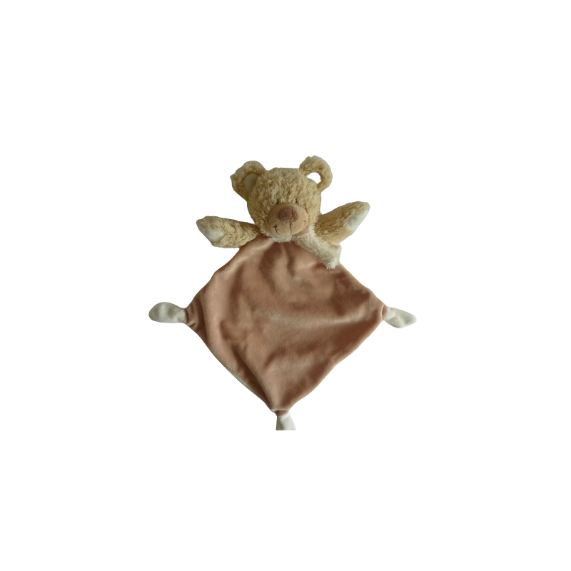 Doudou plat ours forme losange 34 cm environ, marron blanc. Etat : Comme neuf.