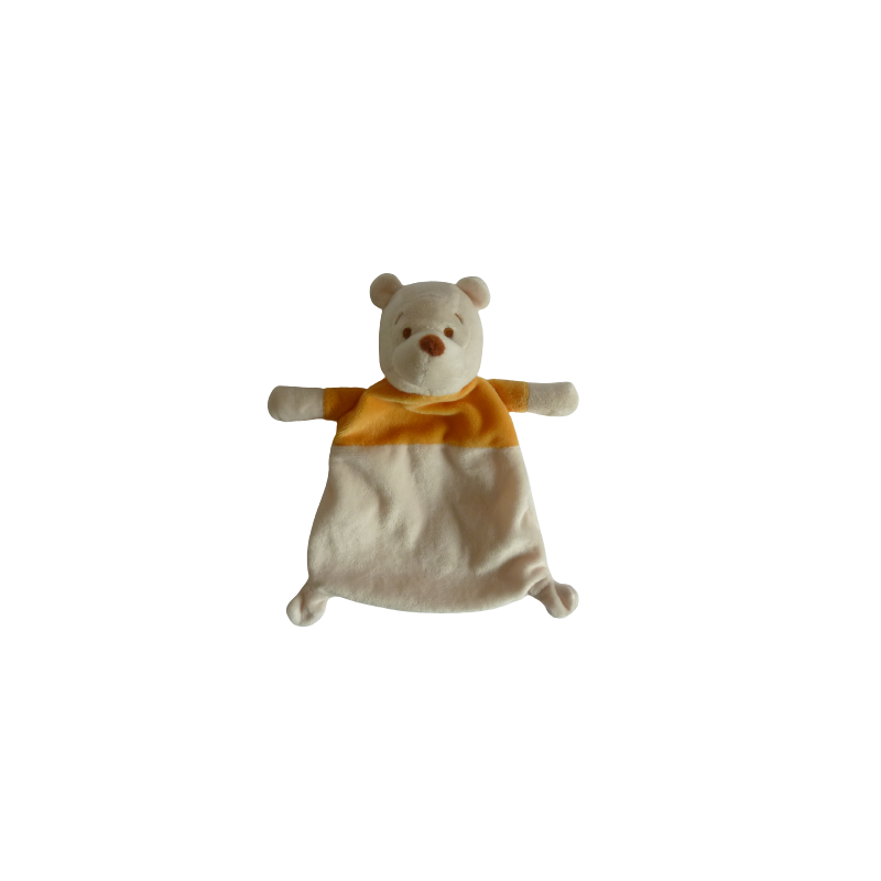 Doudou plat ours 25 cm environ, écru jaune. Etat : Comme neuf