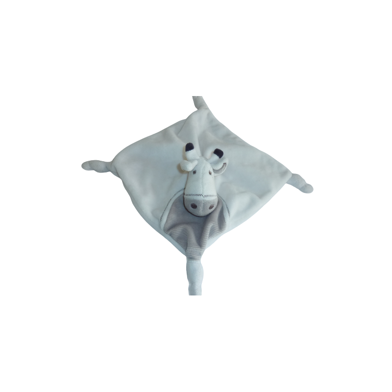 Doudou girafe plat 19x19 cm environ, 4 nouages, blanc gris. Etat : Très bon étatDestinataire :
