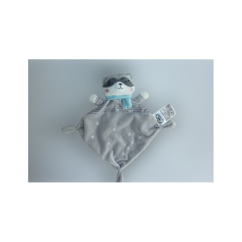 Doudou plat raton laveur forme losange 29 cm environ, gris motif étoiles. Etat : Comme neufDestinataire :