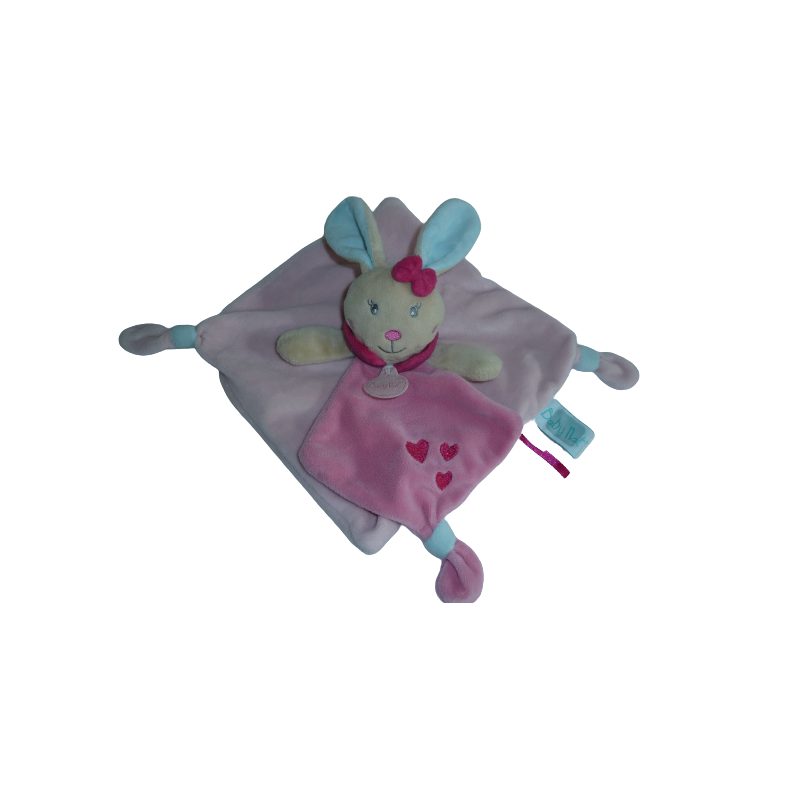 Doudou plat lapin 22x22 cm envrion, rose. Etat : Bon état (de légères marques d'usure)