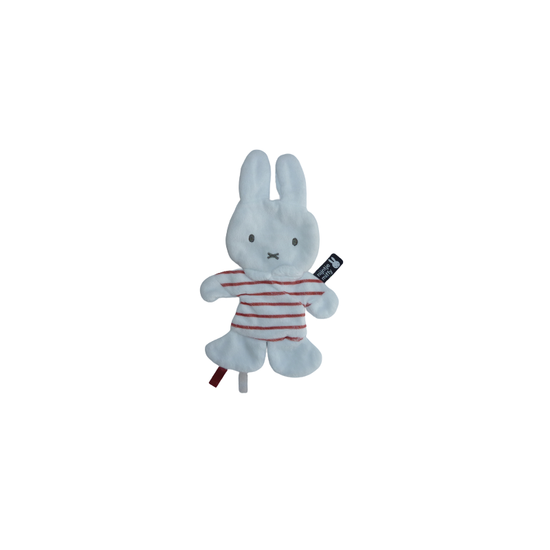 Doudou plat lapin 22 cm environ, blanc rayures rouges, matières bruissante. Etat : Comme neufDestinataire :