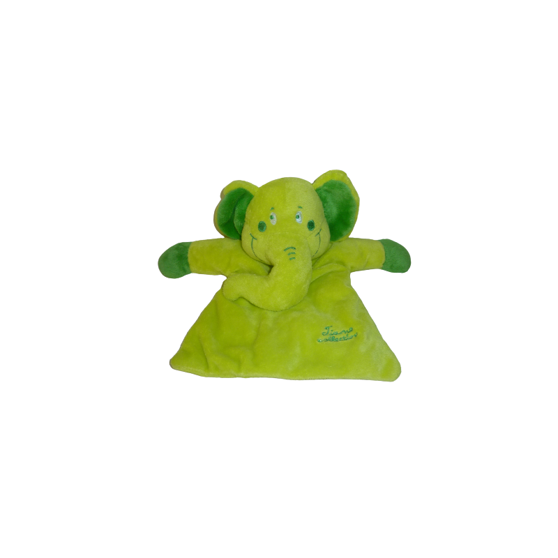 Doudou plat éléphant vert 23 cm environ, matière bruissante. Etat : Comme neuf