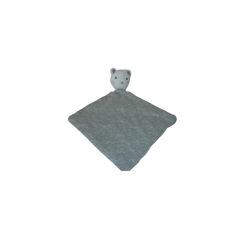 Doudou plat chat forme losange 30 cm environ, gris à motif. Etat : Comme neuf (étiquette de la marque coupée)