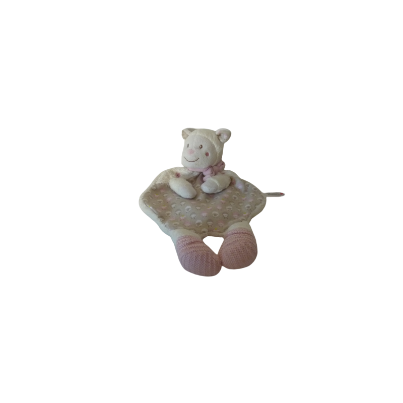 Doudou plat mouton 30 cm environ, beige motif mouton, blanc rose. Etat : Comme neufDestinataire :