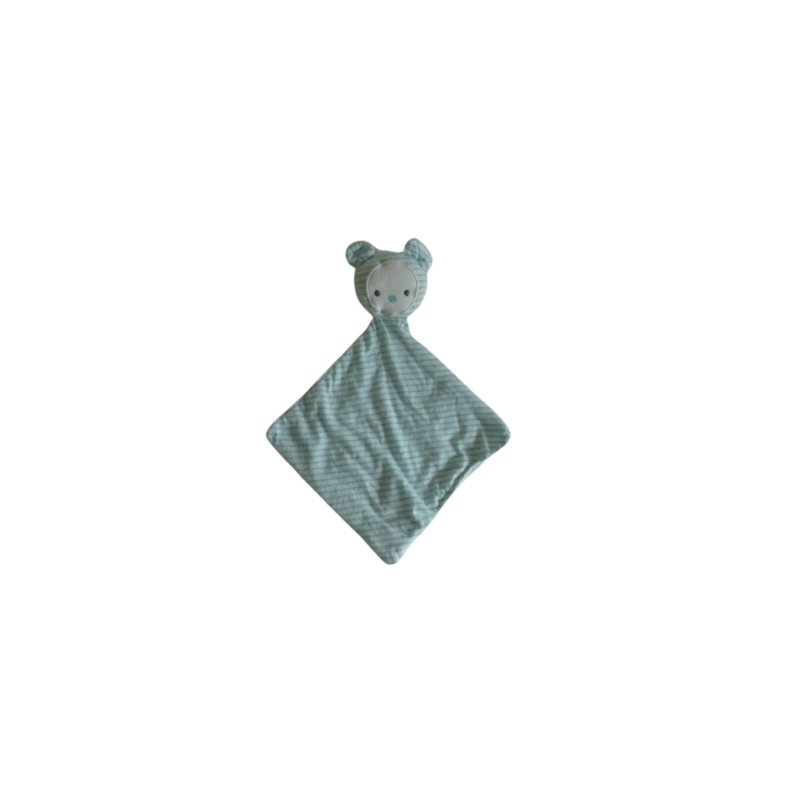 Doudou plat souris forme losange 32 cm environ, rayures blanc turquoise Etat :Très bon état