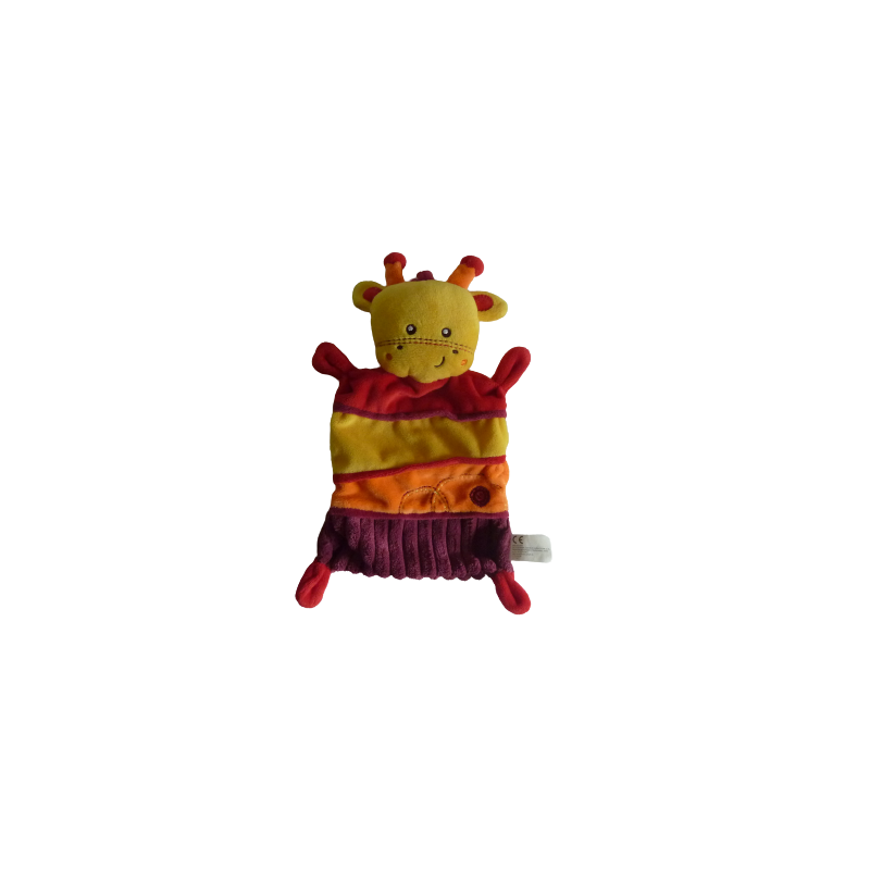 Doudou plat girafe 30 cm environ, jaune rouge bordeaux orange. Etat : Comme neufDestinataire :