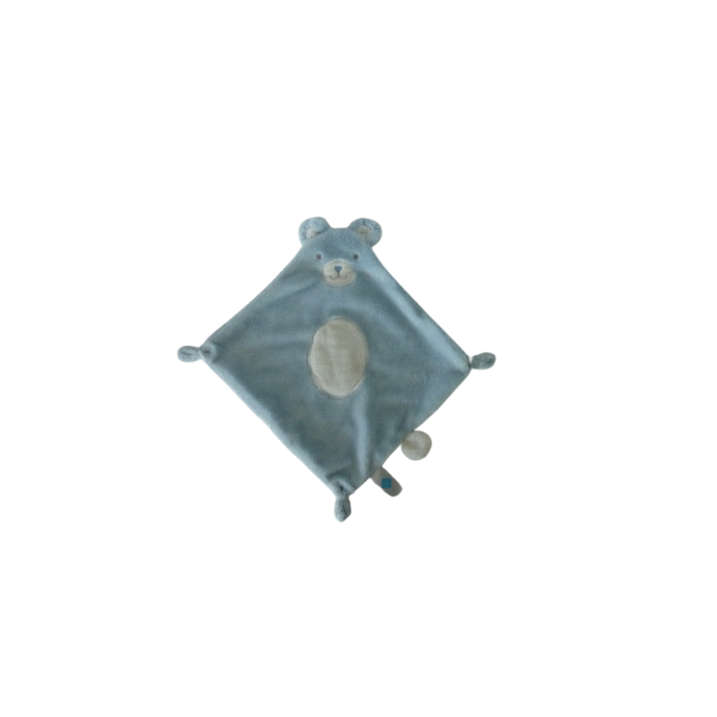 Doudou plat ours 22x24 cm environ, bleu motif pois. Etat : Comme neufDestinataire :