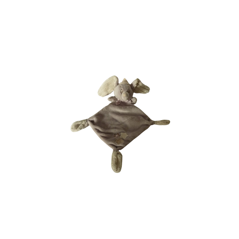 Doudou plat éléphant Dumbo forme losange 31 cm environ, gris crème motif étoiles spirale. Etat : Parfait étatDestinataire :