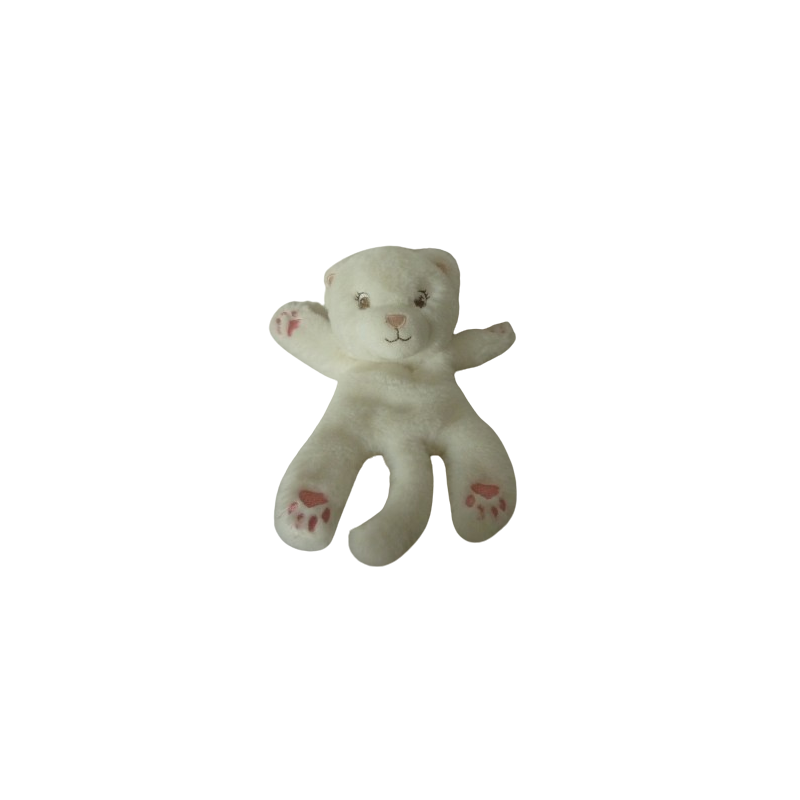 Doudou plat chat 26 cm environ, blanc. Etat : Comme neuf (étiquette marque coupée)