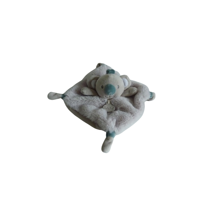 Doudou plat koala 20x20 cm environ, gris vert . Etat : Comme neuf (étiquette marque coupée)