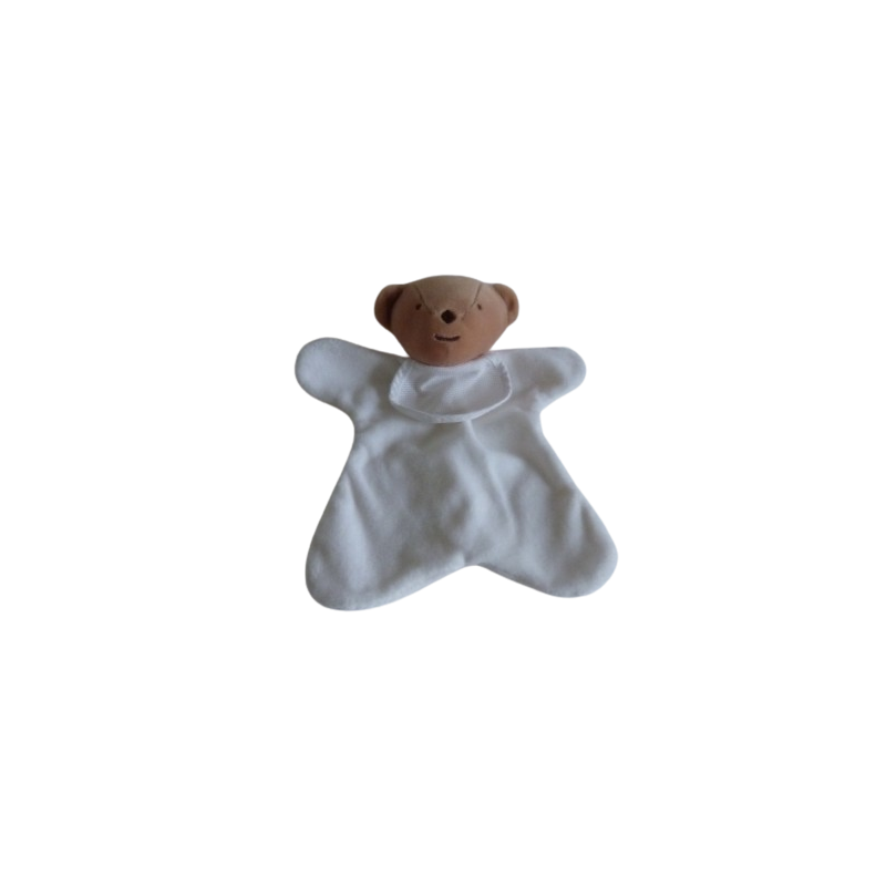 Doudou plat ours blanc 22 cm environ, bavoir blanc à broder. Etat : comme neuf