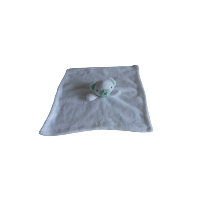 Doudou plat ours blanc vert 32x32 cm environ. Etat : Comme neuf (plus l'étiquette de la marque)Destinataire :