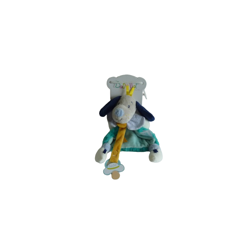 Doudou plat chien attache sucette 20 cm environ, vert bleu gris. Etat : Neuf