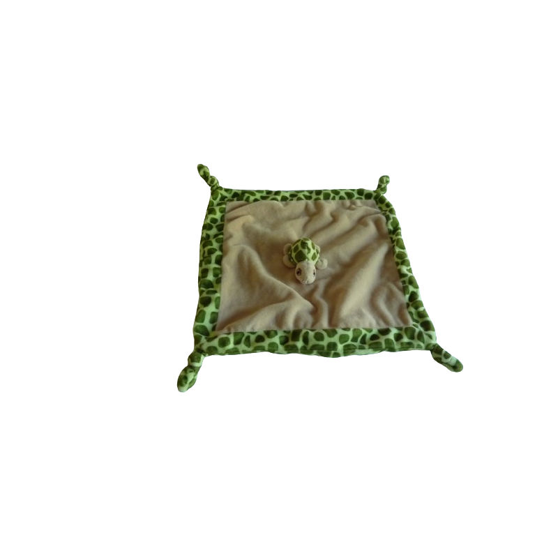 Doudou plat tortue 32x32 cm environ, 4 nouages, marron vert. Etat : Comme neuf (étiquette marque coupée)