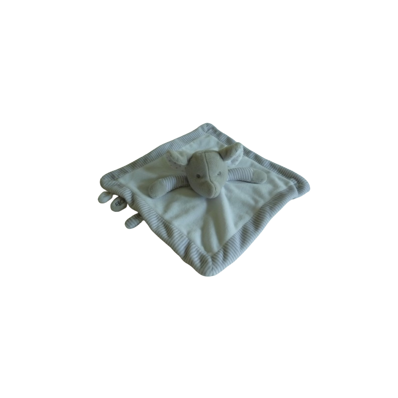 Doudou plat éléphant 25x25 cm environ, blanc gris. Etat : Parfait état