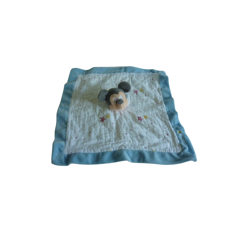 Doudou plat Michey 38x38 cm environ, blanc bleu motif étoiles. Etat : Comme neufDestinataire :