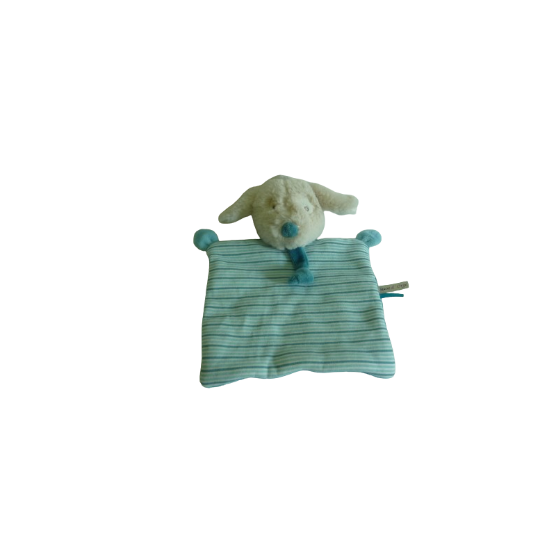 Doudou plat chien22 cm environ, bleu turquoise rayures. tat : Comme neuf