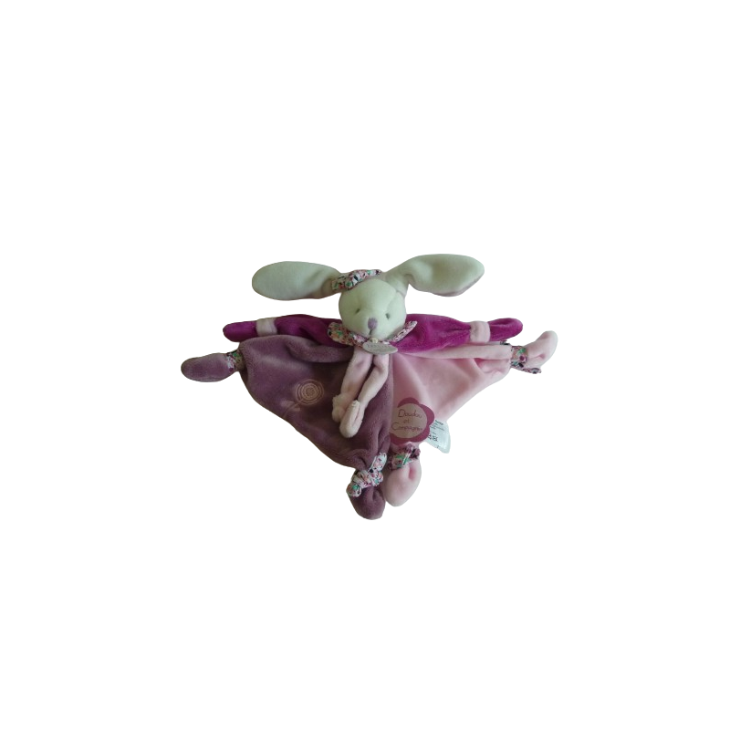 Doudou plat lapin attache sucette 19 cm environ sans compter les oreilles, rose fushia. Etat : Comme neuf