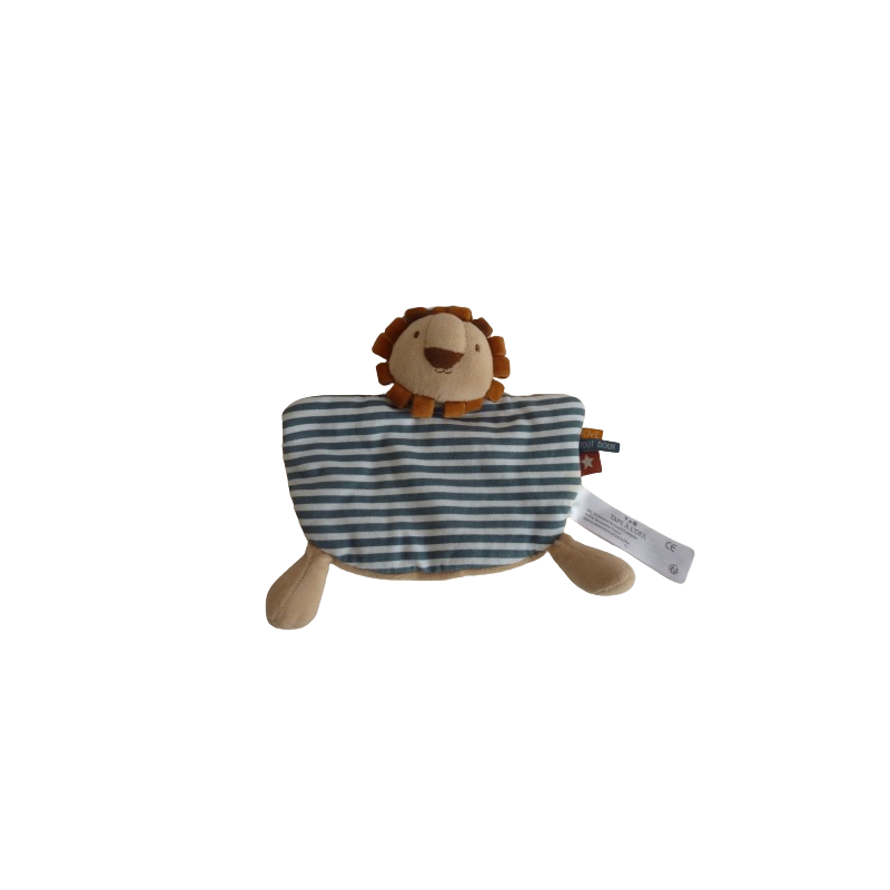Doudou plat lion 25 cm environ, grelot, marron rayures bleu blanc. Etat : Comme neufDestinataire :