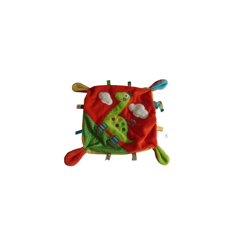 Doudou carré plat motif dinosaure multicolore 19x19 cm environ. Etat : Comme neufDestinataire :