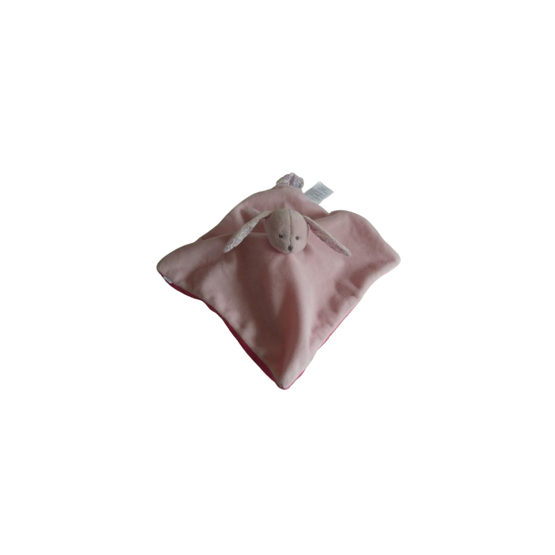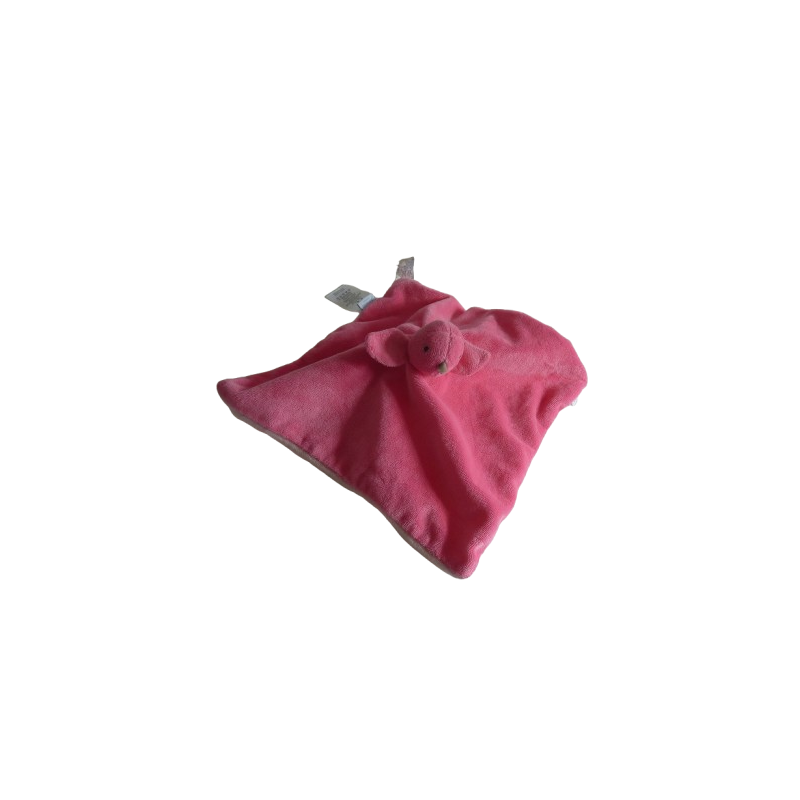 Doudou réversible plat lapin oiseau poussin 23x23 cm environ, rose fushia. Etat : Comme neuf