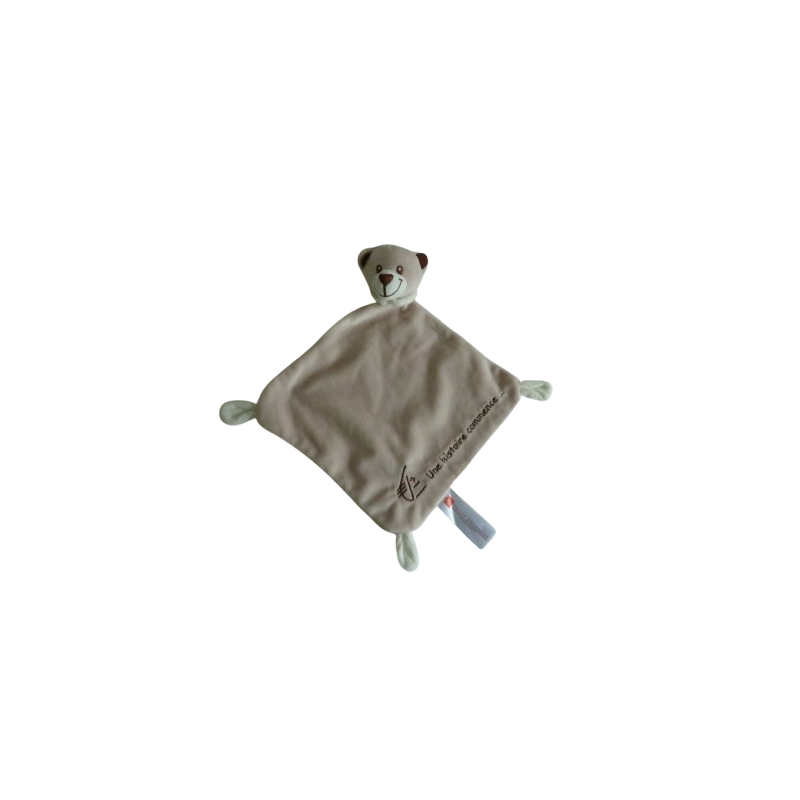Doudou plat ours forme losange 33 cm environ, beige écru, Une histoire commence et sigle Caisse d'Epargne brodés. Etat : Comme neufDestinataire :