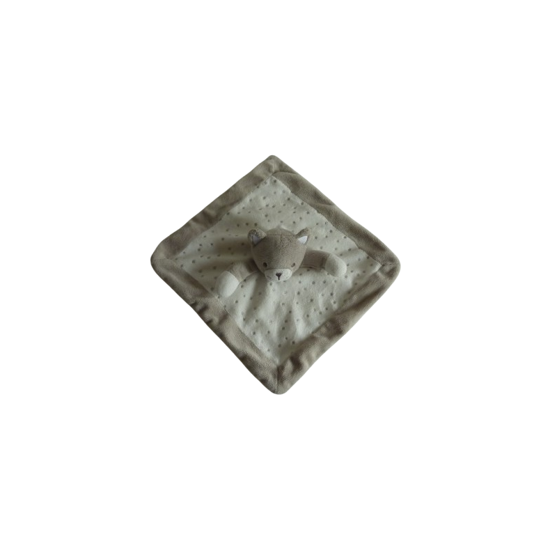 Doudou plat chat 24x24 cm environ, blanc gris motif étoiles. Etat : Très bon étatDestinataire :