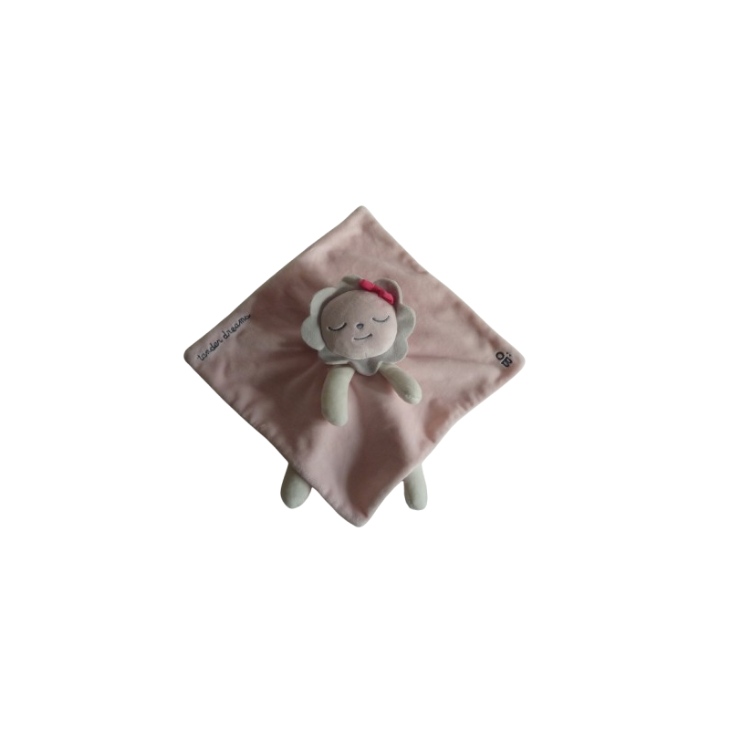 Doudou fleur 26x26 cm environ, jambes apparentes, rose blanc motif petits pois au verso. Etat : Comme neuf (étiquette marque coupée)Destinataire :