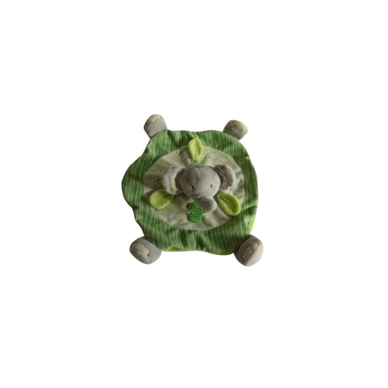 Doudou plat éléphant 26 cm environ de large, vert gris beige Titoutam brodé. Etat : Comme neufDestinataire :