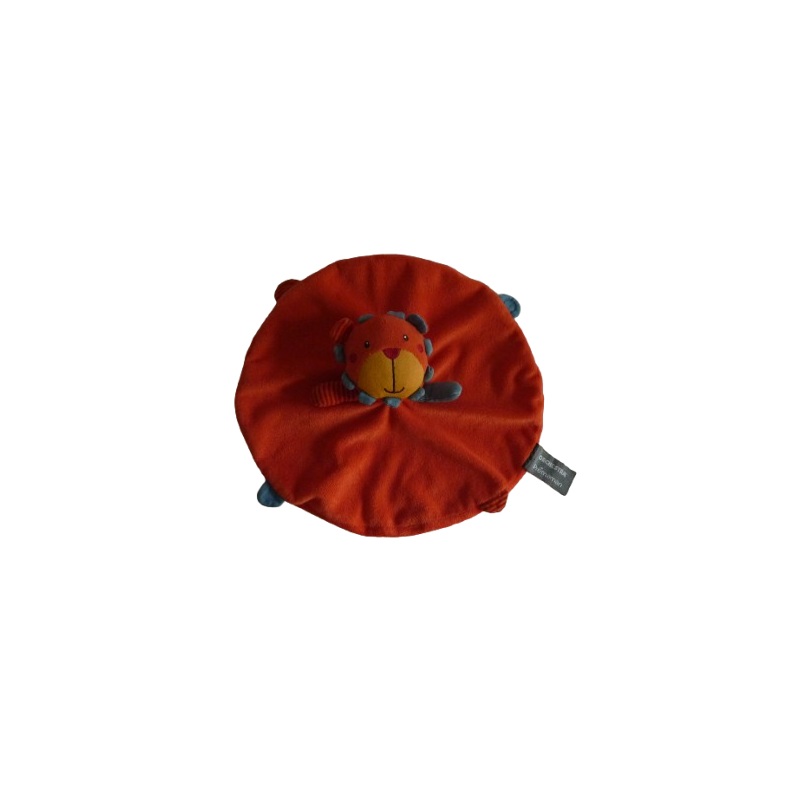 Doudou plat lion forme ronde 26 cm environ, orange. Etat : Parfait étatDestinataire :
