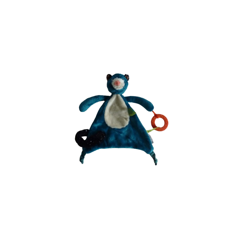 Doudou plat panthère 27 cm environ, bleu beige, attache tétine. Etat : Comme neufDestinataire :