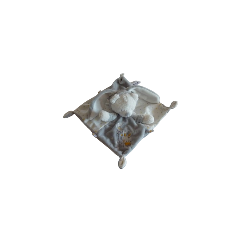 Doudou plat ours 22x22 cm environ, gris blanc motis étoiles lapin lune. Etat : Comme neufDestinataire :