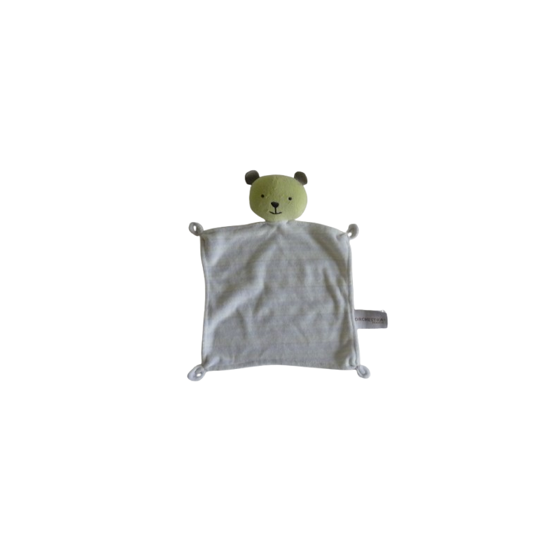 Doudou plat ours 26 cm environ, vert rayures. Etat : Très bon étatDestinataire :