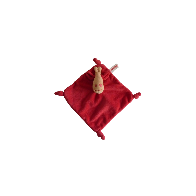 Doudou plat girafe 19x19 cm environ, 4 nouages, rouge. Etat : Excellent étatDestinataire :