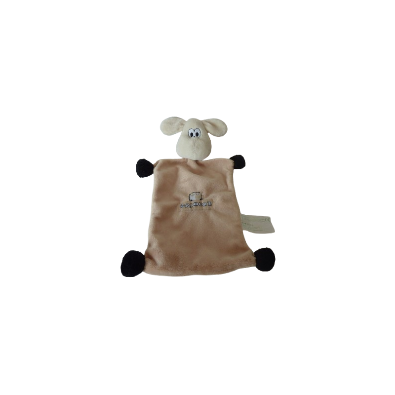 Doudou plat mouton 29 cm environ, marron clair beige noir écusson Mouton Brioche. Etat : Comme neufDestinataire :