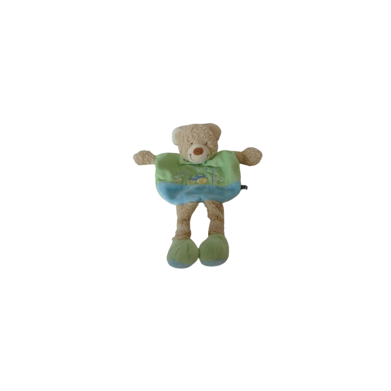Doudou plat ours 31 cm environ, vert bleu motif tracteur, oiseaux ….. Etat : Excellent étatDestinataire :