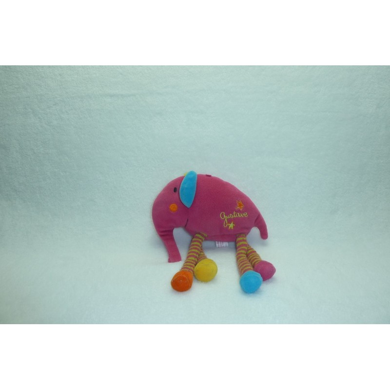Description du doudou : Doudou semi plat éléphant de Augusta du Bay, 18 cm de hauteur, billes dans le ventre et les jambes, grelot. Coloris : fuschia, rayures, Gustave et étoiles brodés. Doudou super doux. Etat : Très bon état (bouloches au jambes, rien de méchant). Produit original. DOUDOU DIFFICILE A TROUVER